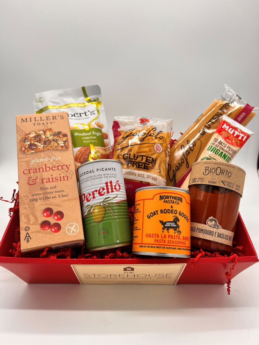 Garofalo Spaghetti 400g Garofalo Casarecce 400g Goat Rodeo and Northern Pasta Company Hasta La Pasta 100g Bio Orto Pomodoro 350g Millers Cranberry and Raising Toasts 100g Mr Filberts Woodland Truffle & Wild Garlic Mixed Nuts 150g Perello Grodal Olives 350g Mutti Organic Tomato Puree 185g